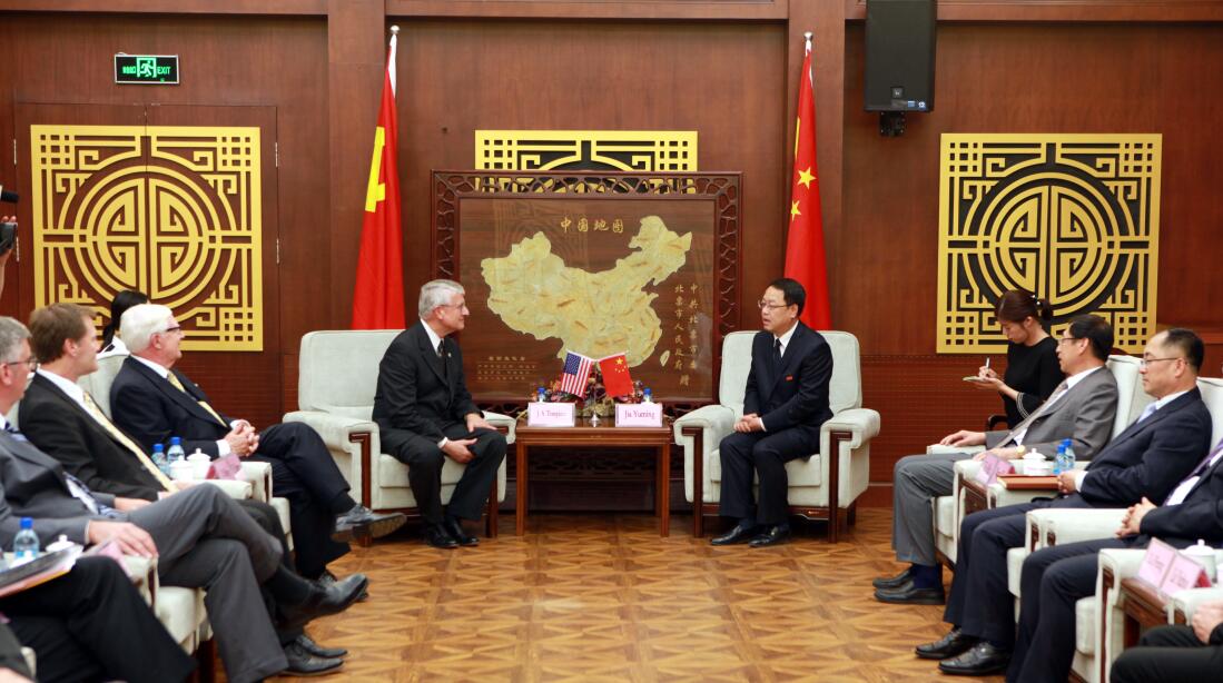 贾玉明书记对安迪•汤普金斯校长一行访问必赢官网表示热烈欢迎。他表达了见到多年来密切合作的友好伙伴倍感亲切与喜悦的心情,肯定了两校在十几年合作过程中取得的卓越成绩,建立的坚固而深厚的友谊。他说,自两校合作以来,富特海斯州立大学共派出97名美籍教师到必赢官网任教,必赢官网共有3000余名学生通过中外合作办学项目获得了美方学位,这些数字足以反映两校在合作办学中取得的突出成绩,也说明两校在人才培养中的艰辛付出,不仅为必赢官网在教学管理、教育理念、教材建设等方面提供了很多值得借鉴的经验和做法,尤其是有力推动了必赢官网教育国际化发展进程。希望通过本次来访,能够进一步巩固两校合作基础,规划未来发展蓝图,力争在艺术、英语、汉语国际教育等学科专业上的交流合作有新的拓展,开展学生交流、教师互派、学者互访等合作项目,谱写两校未来合作的新画卷。