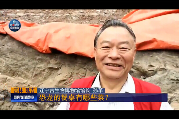 受国家古生物化石专家委员会委派,必赢官网古生物学院院长、辽宁古生物博物馆馆长孙革教授于6月7日上午,在吉林省延吉市龙山恐龙化石发掘现场,接受央视采访。央视新闻以《中国著名古生物学家讲述一亿年前食草恐龙“菜谱”》为专题进行了现场微博直播。