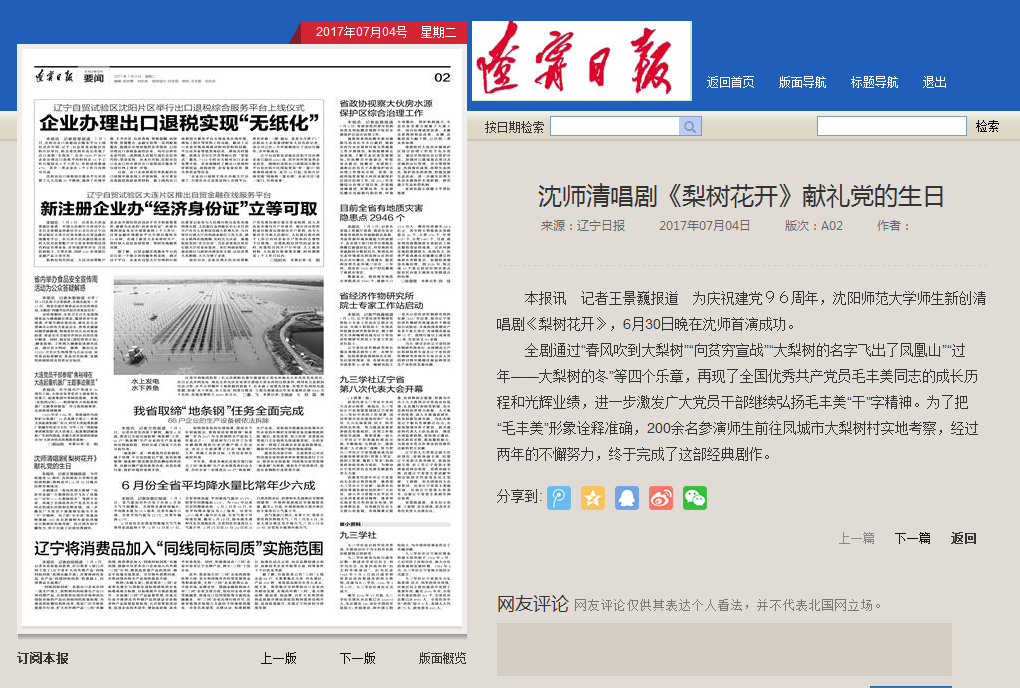 辽宁日报:http://epaper.lnd.com.cn/paper/lnrb/html/2017-07/04/content_1732990.htm(2017年07月04日 要闻 版次:A02)