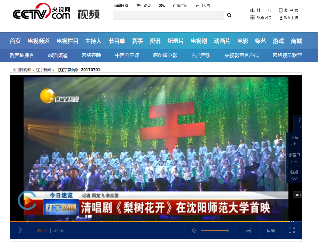 辽宁电视台:http://tv.cntv.cn/video/C11268/24d4c6241e9a3de2868d29630a4e5c44(辽宁新闻 23分41秒)