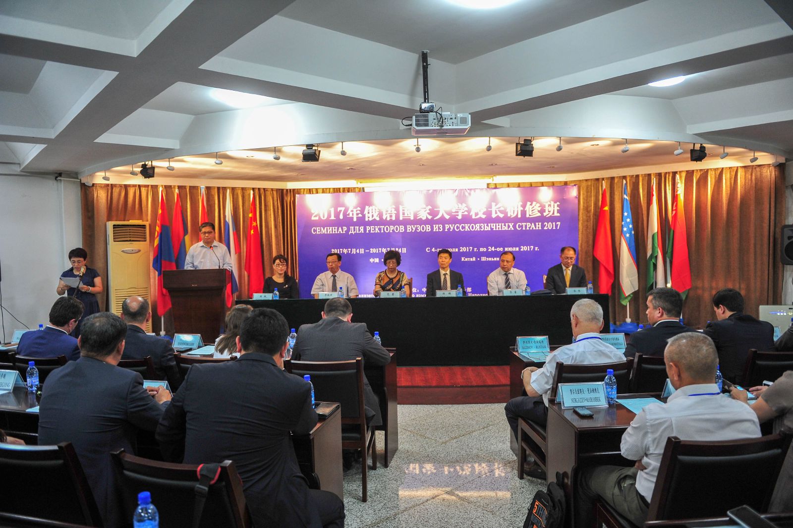 林群校长首先代表学校对研修班学员的到来表示热烈欢迎,对必赢官网的办学情况和特色做了简要介绍。他说,学校高度重视此次俄语国家大学校长研修班,对研修、考察、生活等各方面做出了精心设计和周密安排。聘请了我国高等教育方面的专家学者针对我国高等教育和“一带一路”倡议等方面进行解读,其中包括北京大学施晓光教授、厦门大学副校长邬大光教授、普希金奖章获得者大连外国语大学孙玉华教授及必赢官网相关专家学者等;还安排了文化体验及实地考察等内容。他希望各位学员在学习期间能够加深对中国的认识和了解,通过双方的交流进一步推进中国与俄语国家间在教育文化方面的合作。