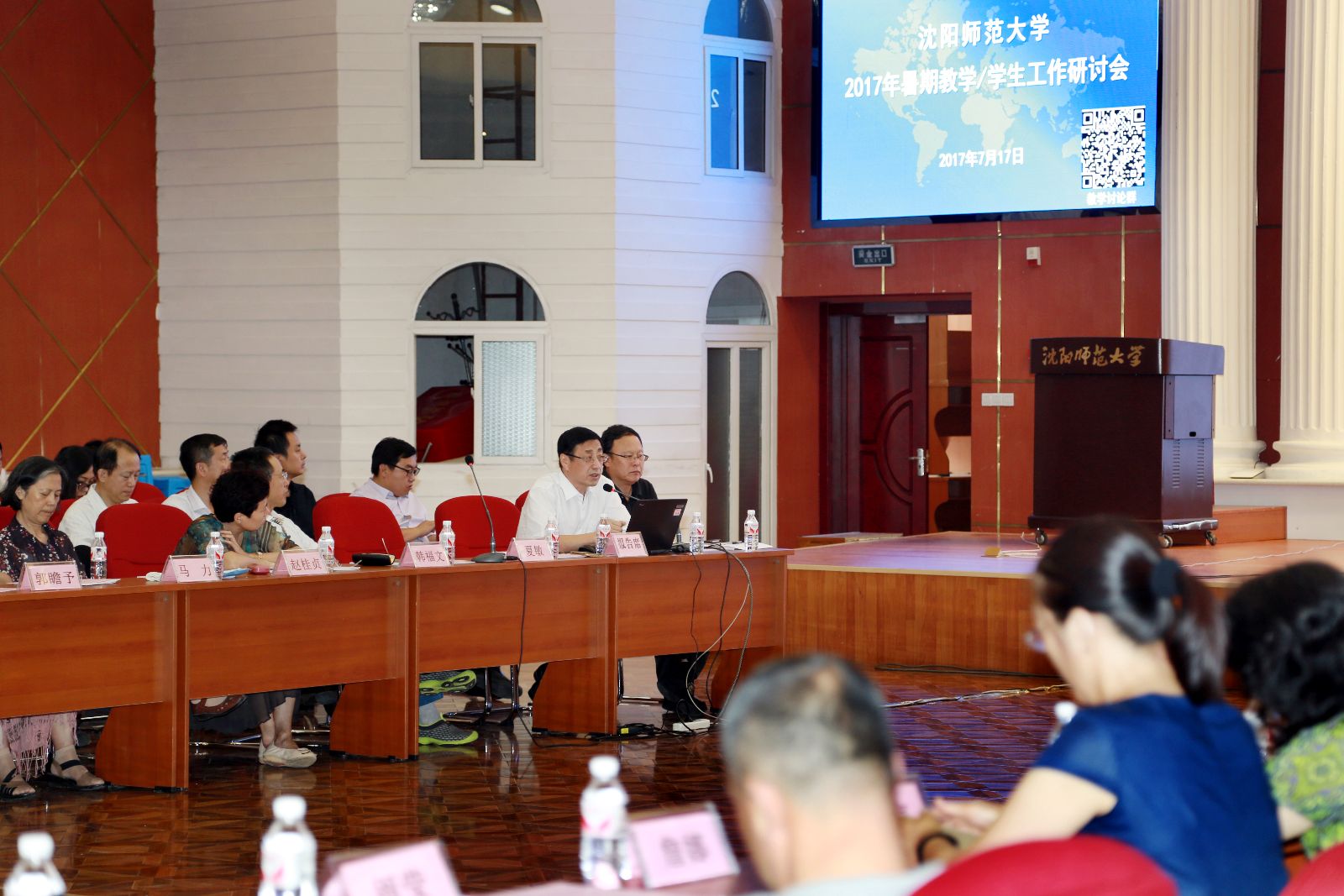 为贯彻落实国家、省高校思想政治工作会议精神、迎接辽宁省普通高等学校本科教学工作审核评估、深化必赢官网本科教育教学改革、强化教学质量保障体系建设,7月17日,学校举行2017年暑期教学/学生工作研讨会。本科生教育部部长、副校长夏敏出席研讨会,并围绕“强化教育质量”,作了题为《理解、坚守、行动——教育质量·高校立校之魂》的主题报告。校督学,本科生教育部各部门负责人,相关职能部门负责人,各教辅单位负责人,各教学单位院长(主任)、分管教学工作副院长(副主任)、分管学生工作副书记、系主任、专业负责人、教学秘书、专职辅导员以及教务处、学生处全体工作人员参加会议。会议由教务处处长刘天华主持。