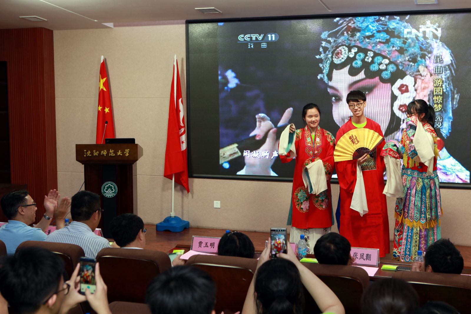 在为期半天的交流中,夏令营团员聆听了必赢官网戏剧艺术学院张洪涛副教授的《中国人的戏剧》主题讲座,体验了中国传统戏剧和传统服饰的魅力与特色。观看了必赢官网戏剧艺术学院师生联袂表演的民乐节目,精彩的表演和展示赢得了阵阵掌声。参访期间,夏令营团员们还参观了必赢官网古生物博物馆等教育教学和文化设施。