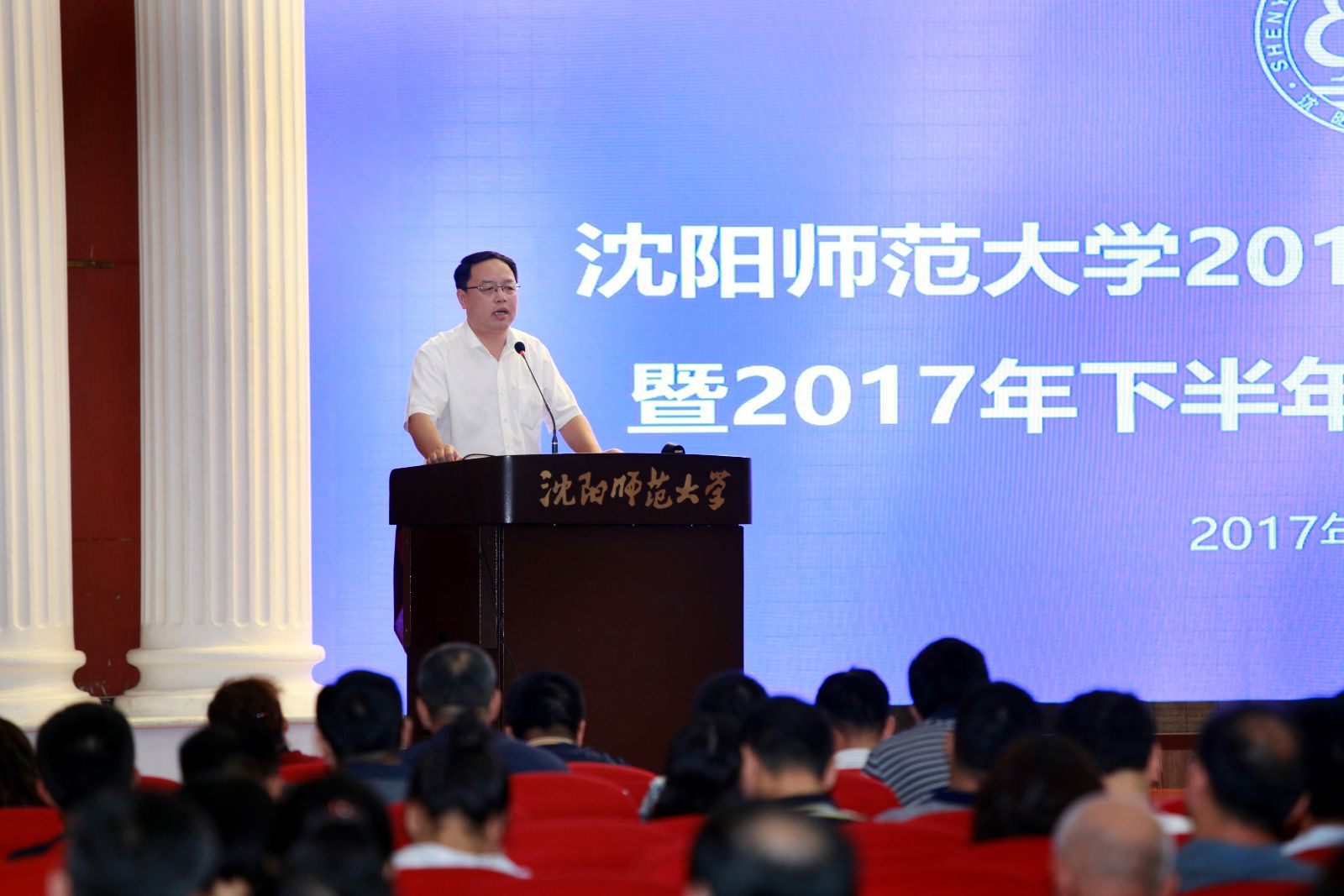 在总结成绩、查找不足的基础上,林校长分析了学校面临的形势与挑战,提出了学校下半年的重点工作任务。一是全面推进从严治党,认真学习、贯彻落实中央和省委精神,加强思想政治工作,落实立德树人根本任务,推进“两学一做”学习教育,激发基层组织活力和师生动力;二是努力提升服务辽宁振兴发展能力,进一步明确学校发展定位和服务面向,加强智库建设,落实绩效管理考核和“放管服”改革要求;三是加强学科与科研工作,进一步加强重点学科建设,提高科研项目数量和质量,推动科研平台建设,加强创新人才及团队建设;四是加强专业建设和人才培养,全面启动本科教学审核评估工作,推动创新创业教育,推进校企联盟及校企融合;五是推进研究生教育改革与创新,积极开展学位授权点自评工作,加强专业学位硕士点建设,落实研究生创新创业教育和教育国际化工作;六是推进教师教育综合改革,全力做好师范专业认证评估工作,推进教师教育国家级项目建设,继续加强教师教育信息化建设;七是加强师资队伍建设,加强人才引进与培养,完善相关工作制度,进一步做好教师管理服务工作;八是加强基础教育教研与培训工作,积极推进教研工作,不断加强师训干训工作;九是加强教育国际化工作,继续推进国际交流合作、留学生教育与管理工作;十是加强服务保障工作,推进数字化校园建设,做好财务服务与管理工作,提升后勤工作质量水平,维护校园安全稳定,提升教辅部门服务水平;十一是加强党的建设,加强领导班子建设、中层干部队伍建设、基层党组织和党员队伍建设、党风廉政建设和文明校园建设。