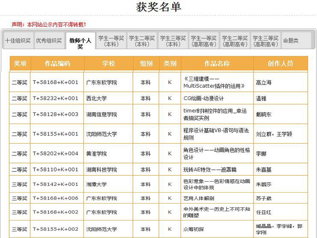 据了解,第五届全国高校数字艺术作品大赛由中华人民共和国工业和信息化部指导,工业和信息化部人才交流中心主办,教育部全国高职高专校长联席会议特别支持,NACG数字艺术人才培养工程办公室、上海工艺美术职业学院联合承办。本次大赛的颁奖典礼将于10月在上海举行。