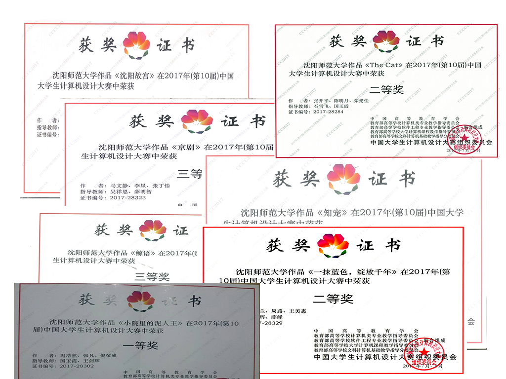2017年中国大学生计算机设计大赛决赛在暑期完成,教育技术学院共有14件作品参加此次大赛,并取得了优异成绩。其中,获得一等奖1项、二等奖2项、三等奖11项。