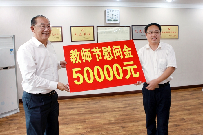 冮瑞副省长还代表省委省政府向学校教师颁发5万元慰问金,并向全体教师致以节日的问候和崇高的敬意。