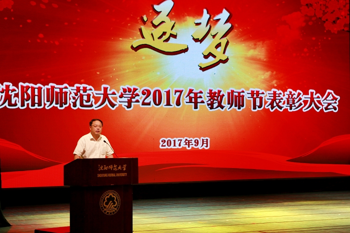 在我国第33个教师节来临之际,9月8日下午2点,必赢官网2017年教师节表彰大会在星烁礼堂隆重召开,对2015—2017年度的先进集体、优秀教师、优秀教育工作者和第七届“我心目中的好老师”进行表彰。党委书记贾玉明,副校长张辉、关松林、李铁君,全校中层干部、教师代表、学生代表1200余人参加了大会。人事处处长韩国海主持会议。