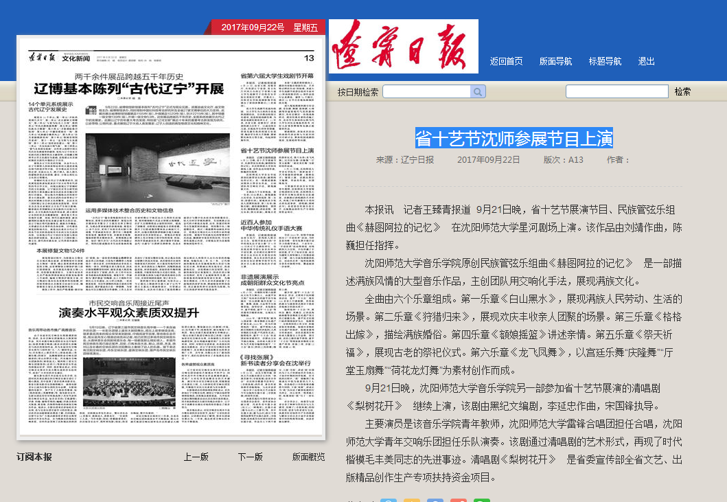 新闻来源:辽宁日报 2017年09月22日次:A13 记者:王臻青