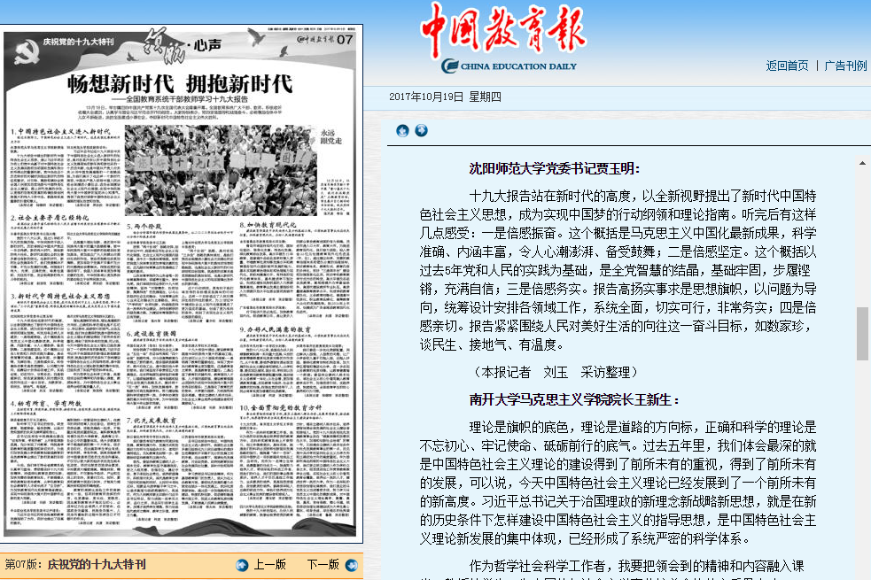 新闻来源:中国教育报 2017年10月19日 07版 记者:刘玉