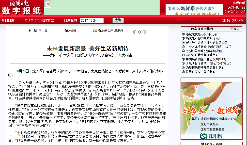 新闻链接:http://epaper.syd.com.cn/syrb/html/2017-10/22/content_125198.htm?div=-1