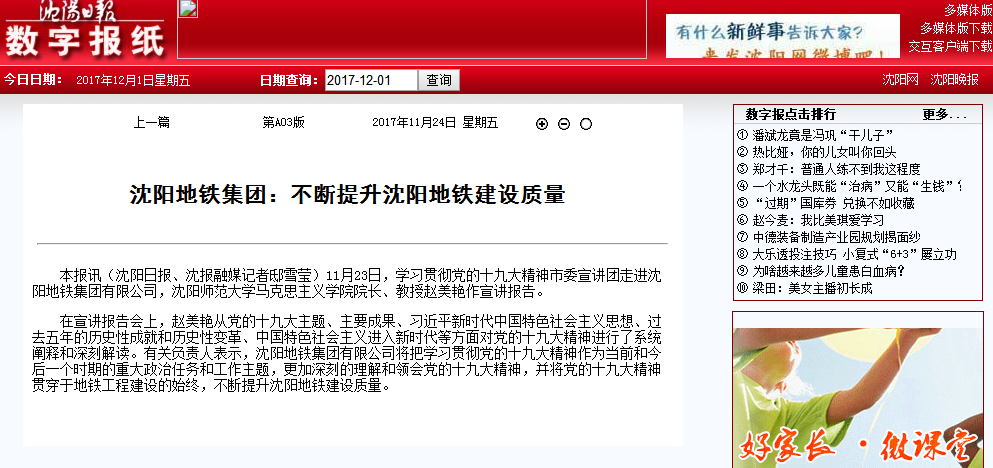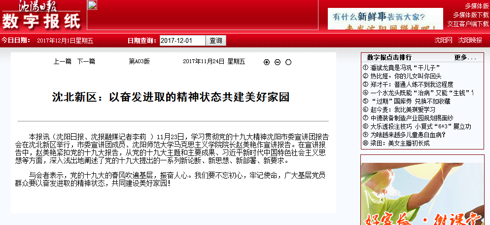 沈阳日报:http://epaper.syd.com.cn/syrb/html/2017-11/30/content_138520.htm?div=-1(11月30日 第A03版)