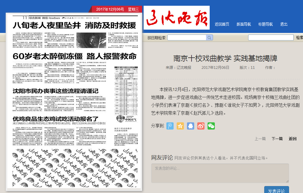 辽沈晚报:http://epaper.lnd.com.cn/paper/lswb/html/2017-12/06/content_1757846.htm(12月6日 11版)