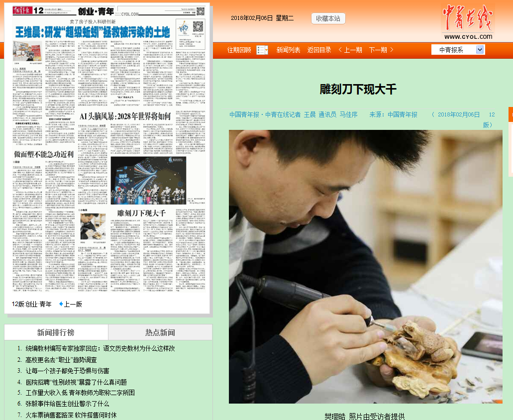 新闻来源:中国青年报(2018年 2月6日 12版) 记者:王晨 通讯员 马佳序