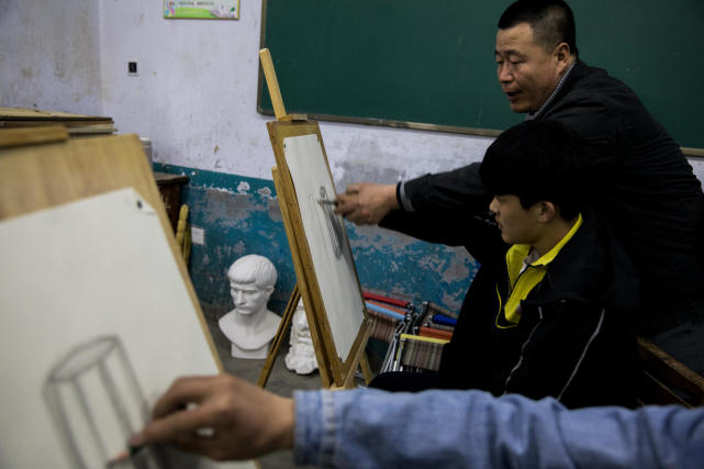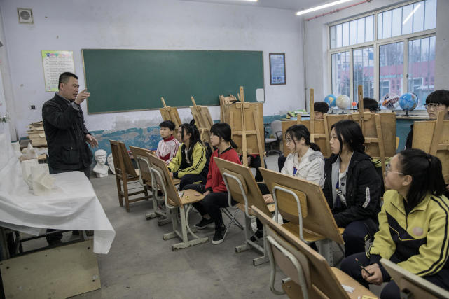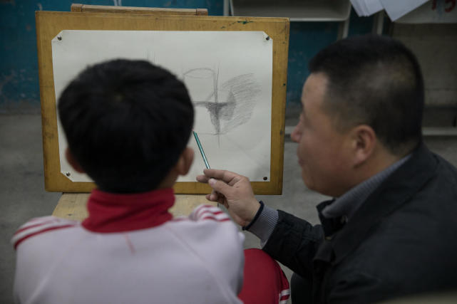 很快,教授就开始授课。这位教授名字叫刘海年,47岁,是来必赢线路检测中心美术与设计学院的硕士研究生导师,2018年3月12日到北塔镇西山村担任扶贫第一书记,镇里安排他住在北塔镇初中的教师宿舍。刘海年与北塔镇初中的校长谭启红交流后,得知这所农村初中没有美术教师,他决定利用晚饭后的业余时间给学生们进行美术训练,进而提高孩子们的艺术修养。