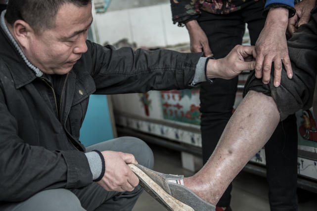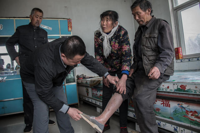 刘海年与村书记任玉成一起走访,刘海年发现路德富的小腿已经浮肿的非常厉害。
