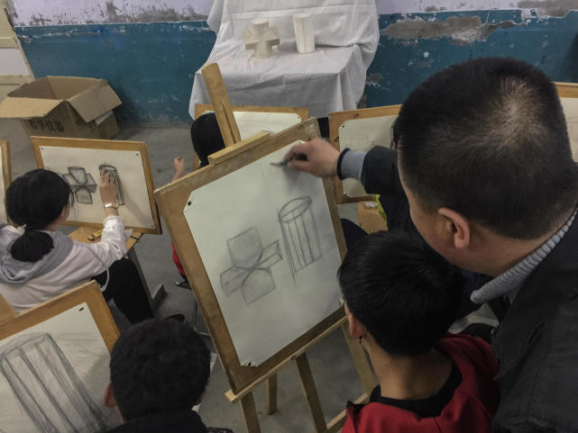 美术学习班的孩子最大的15岁,最小的只有10岁。他们没有任何美术基础,刘教授就从最基础的几何形体入手。第一次教这么小的孩子,刘教授也忙活够呛。
