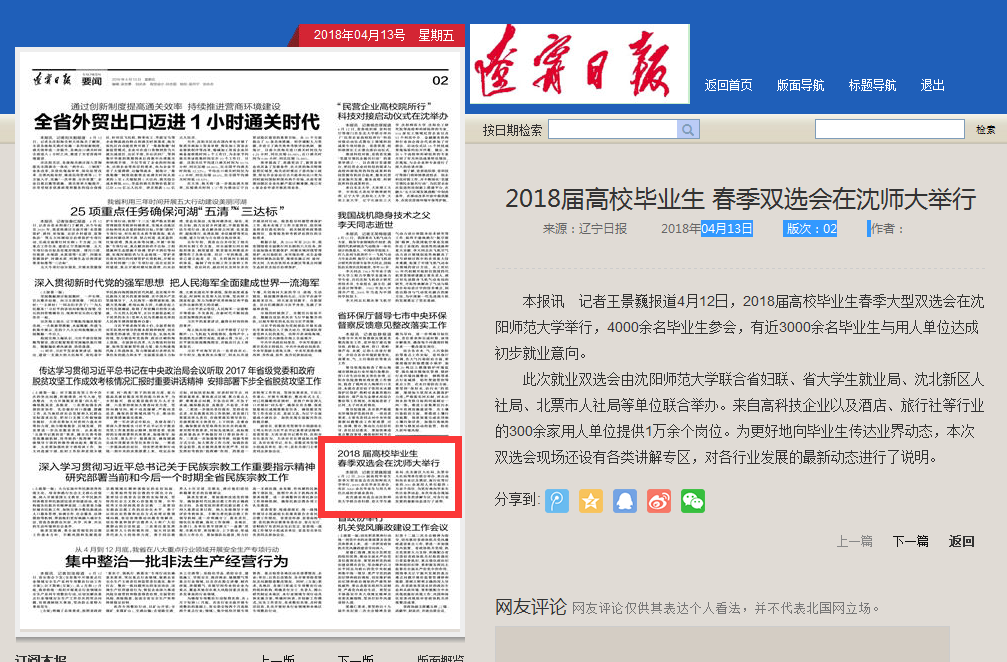 沈阳日报:http://epaper.syd.com.cn/syrb/html/2018-04/13/content_178788.htm?div=-1(4月13日A03版)