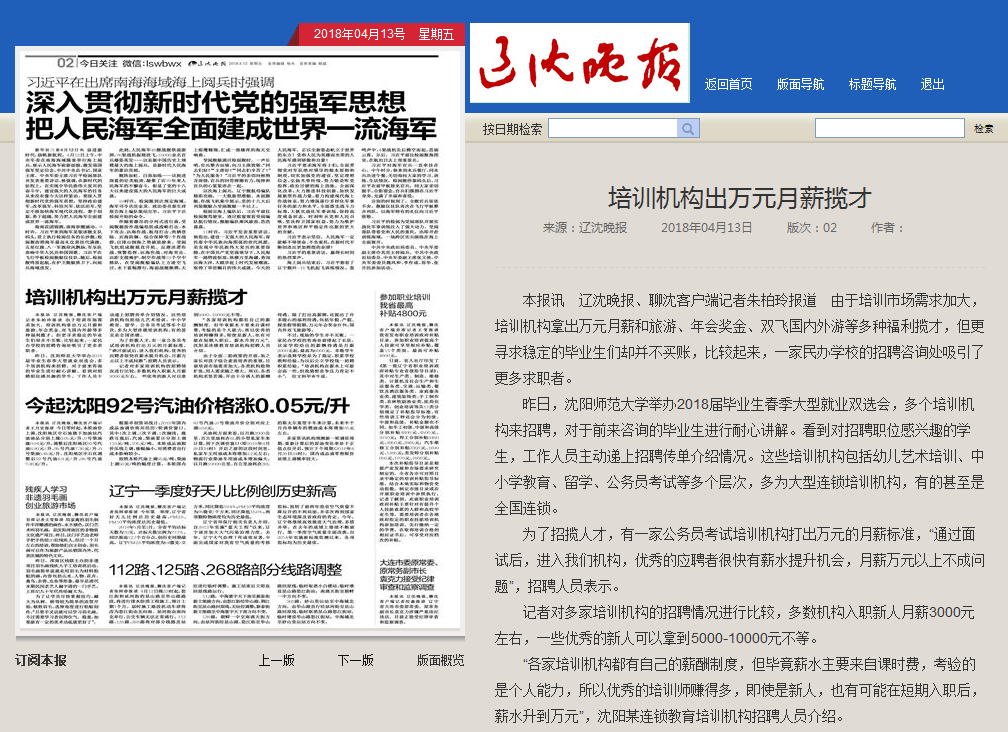 辽沈晚报:http://epaper.lnd.com.cn/paper/lswb/html/2018-04/13/content_1775753.htm(4月13日2版)