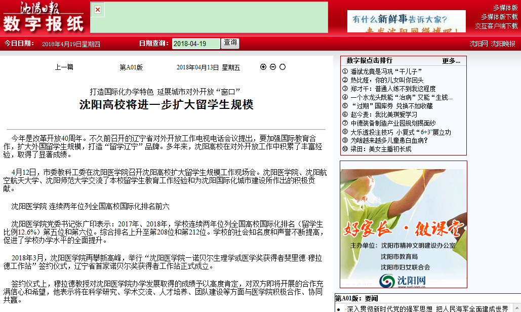 沈阳日报:http://epaper.syd.com.cn/syrb/html/2018-04/13/content_178772.htm?div=-1(04月13日 A01版)