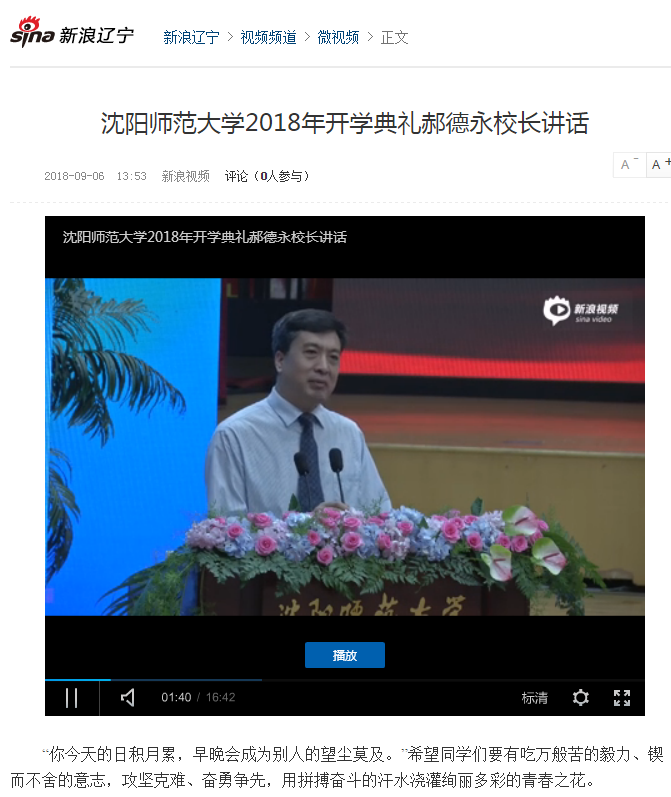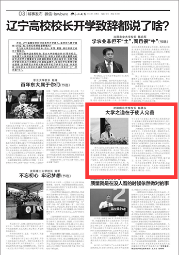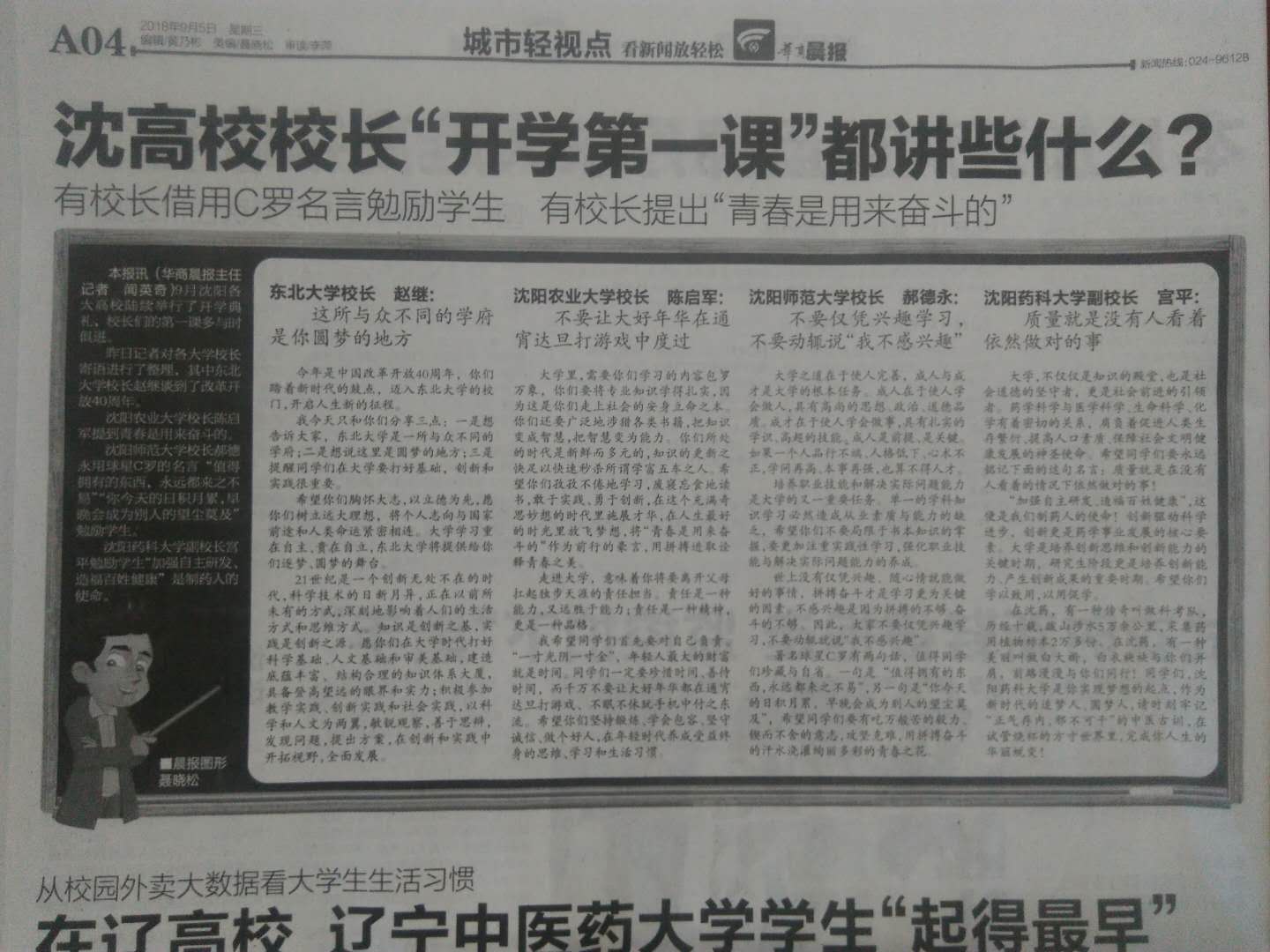 近日,《华商晨报》、《辽沈晚报》、新浪辽宁报道了必赢官网郝德永校长在2018级新生开学典礼上的致辞。