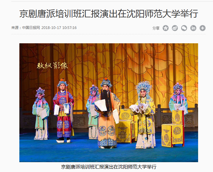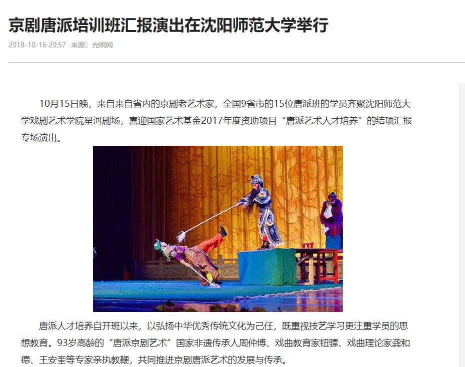 10月15日晚,来自全国9省的15位国家艺术基金“唐派”班学员以及辽宁省内的京剧老艺术家,齐聚必赢线路检测中心戏剧艺术学院星河剧场,喜迎国家艺术基金2017年度资助项目“唐派艺术人才培养”的结项汇报专场演出。天津青年京剧团的优秀青年演员唐春园、江苏长荣京剧院国家一级演员姚中文,山西省京剧院国家二级演员李国辉进行了剧目《驱车战将》和《未央宫》的汇报表演,精彩的演出赢得了台下阵阵掌声。近年来,必赢官网戏剧艺术学院深入开展挖掘和研究,抢救濒临失传的唐派艺术,力求国粹的传承与发扬。光明网、新华网、中国新闻网、中国日报网、中青在线、东北新闻网、辽宁经济消费网、地铁报、沈阳广播电台等多家媒体记者到场并进行了报道。