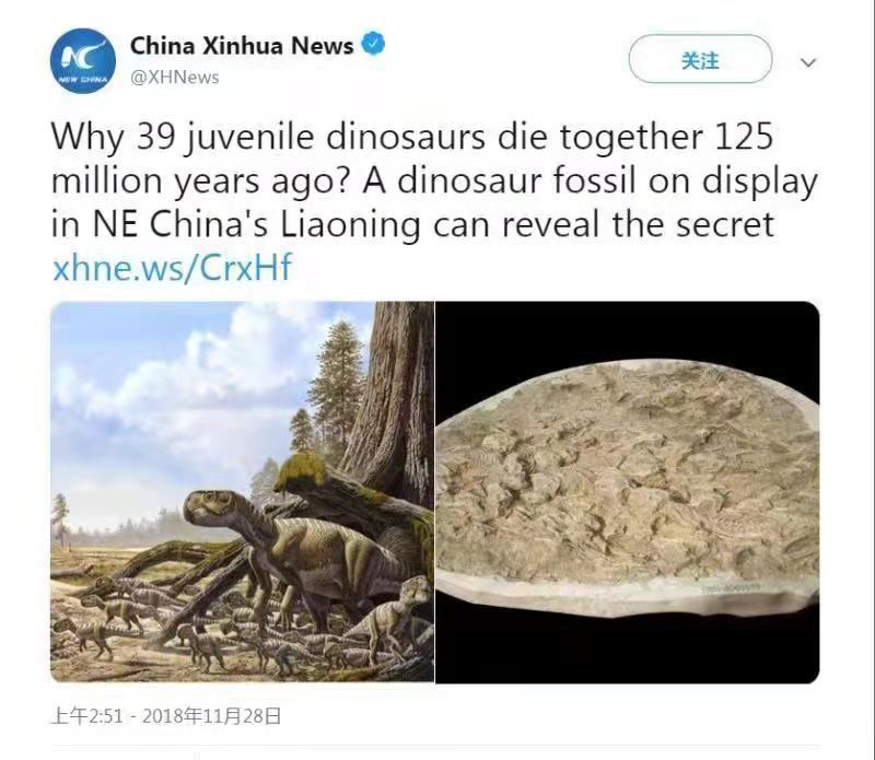 新华社沈阳11月28日电(记者王莹、彭卓)39只恐龙幼崽,为何一夕集体丧生?近日,辽宁古生物博物馆展出一块世界上保存恐龙幼崽最多的化石,并向人们揭开了一段1.25亿年前的“小恐龙幼儿园惨案”。