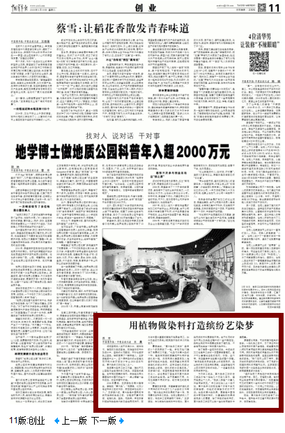 2016年暑假,王梦媛赴云南大理写生,接触到“草木染”。“很漂亮,北方少有这种手工艺的作坊,我想回学校也做一个。”王梦媛介绍,草木染是中国民间传统而独特的染色工艺,它起源于黄河流域,包括扎染、蓝染、花染等。早在东晋时期这种染色技术就已经在民间流行,因为与中国水墨画的朦胧风格异曲同工,如今已经成为具有少数民族风格的手工印染艺术。