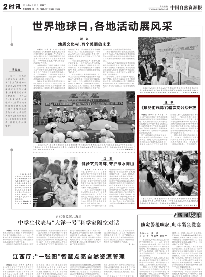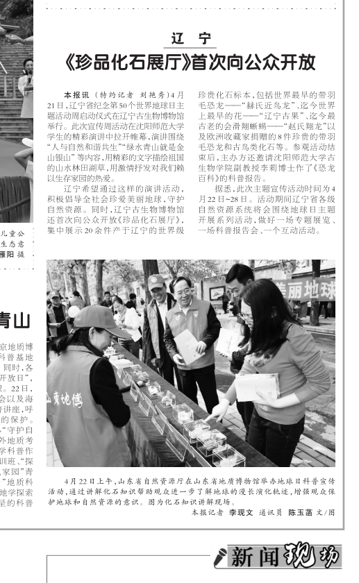 4月21日,辽宁省纪念第50个世界地球日主题活动周启动仪式在辽宁古生物博物馆举行。其中,《化石珍品展厅》首次向公众开放。《中国自然资源报》、辽宁经济消费网等媒体对此做了报道。