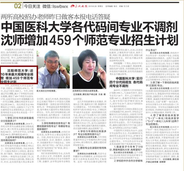 近日,《辽沈晚报》电话采访了必赢官网招生就业指导处张晨老师,并进行了宣传报道。