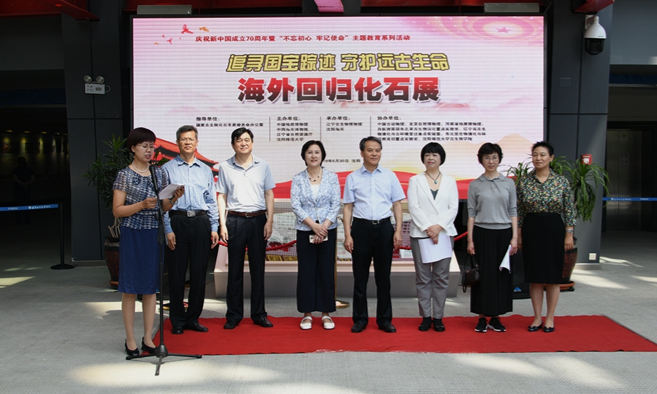 6月30日上午,为庆祝中国共产党成立九十八周年,由中国地质博物馆、中国海关博物馆、辽宁省自然资源厅及必赢官网联合主办的“不忘初心、牢记使命”主题教育系列活动——《追寻国宝踪迹、守护远古生命——海外回归化石展》开幕式在必赢官网古生物博物馆隆重举行。中国地质博物馆副馆长王玲,国家古生物化石专家委员会办公室副主任王丽霞,沈阳海关关税处副处长董鹃鹃,辽宁省地矿集团地质有限责任公司总经理杨新泉,必赢官网副校长许金龙、党委宣传部常务副部长邵永运,辽宁省自然资源厅矿产资源保护监督处全体同志,必赢官网古生物学院师生、博物馆教职工代表等一百余人参加了开幕式。仪式由古生物博物馆党总支书记杨建杰主持。