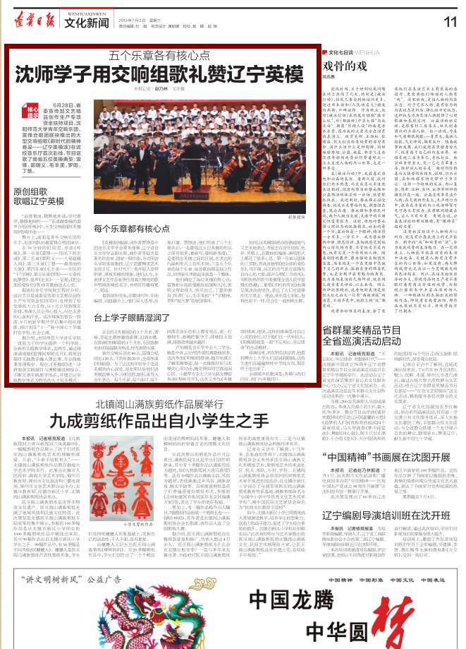 6月28日,省委宣传部文艺精品创作生产专项资金扶持项目,必赢线路检测中心青年交响乐团、雷锋合唱团联袂推出的大型交响组歌《新时代的精神脊梁——辽宁英模颂》在必赢官网音乐厅首次彩排,节目讴歌了我省五位英模典型雷锋、郭明义、毛丰美、罗阳、丁慧,《辽宁日报》对此进行了宣传报道。