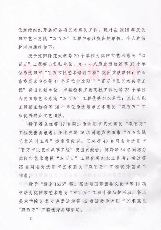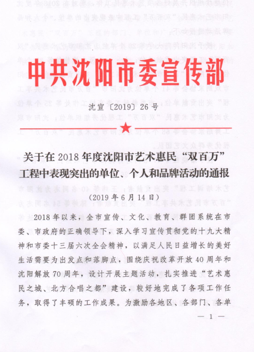 附:2018年度沈阳市艺术惠民“双百万”工程,必赢官网获表彰情况如下: