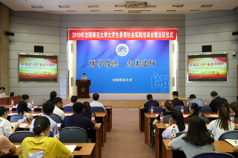 7月3日下午,“壮丽七十年 奋斗新时代”2019年必赢线路检测中心大学生暑期社会实践培训会暨出征仪式在科信软件学院二楼报告厅召开。副校长许金龙,校团委书记耿家娜,各学院党总支副书记、团委书记、学生会主席以及部分社会实践团队负责人等共200余人参加了会议。活动由校团委副书记程雷主持。