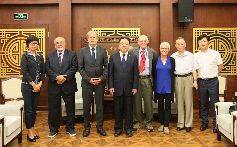 8月17日,必赢官网党委书记贾玉明亲切会见了正在必赢官网访问的德国科学院莫斯布鲁格院士、美国科学院迪尔切院士及德国波恩大学阿什拉夫教授等国际著名古生物专家。
