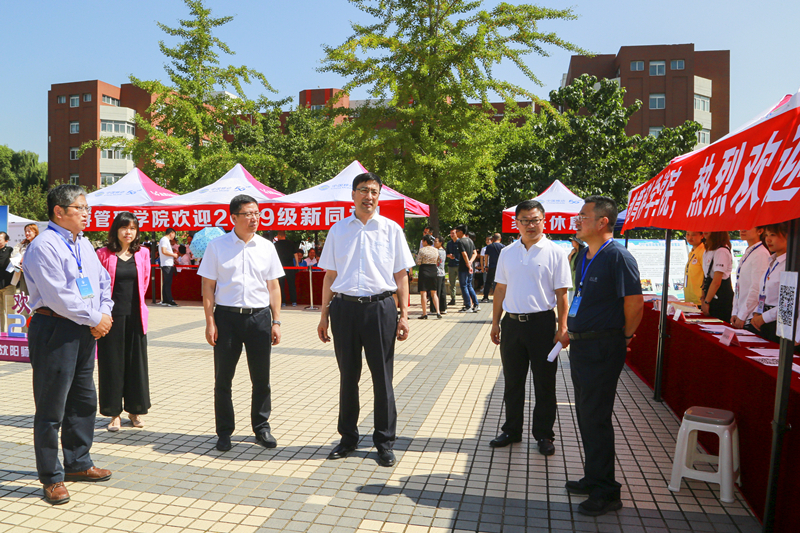 迎新工作是学校给大学生上的第一课,也是集中体现学校办学理念和管理水平、全面展示学校精神风貌的一项重要工作。学校高度重视,成立了以党委副书记为组长的迎新工作领导小组,召开迎新工作协调会,对迎新工作进行了周密的部署与安排。党委书记贾玉明、校长郝德永、党委副书记钱英伟等校领导和相关职能部门一起亲临迎新现场进行检查和指导工作,各学院领导也深入迎新第一线,强化服务与担当,体现协同与联动,迎接2019级的新同学们。