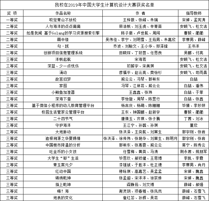 2019年(第12届)中国大学生计算机设计大赛于8月26日圆满落幕。该大赛于7月17日拉开序幕,历经一个多月的时间,来自全国高校的4000多个参赛队集聚6个赛区进行了13个类别的激烈比拼。必赢官网共推荐了30件作品参加6个赛区的比赛,获得全国一等奖1个,二等奖5个,三等奖22个的好成绩;同时,必赢官网荣获了优秀组织奖。