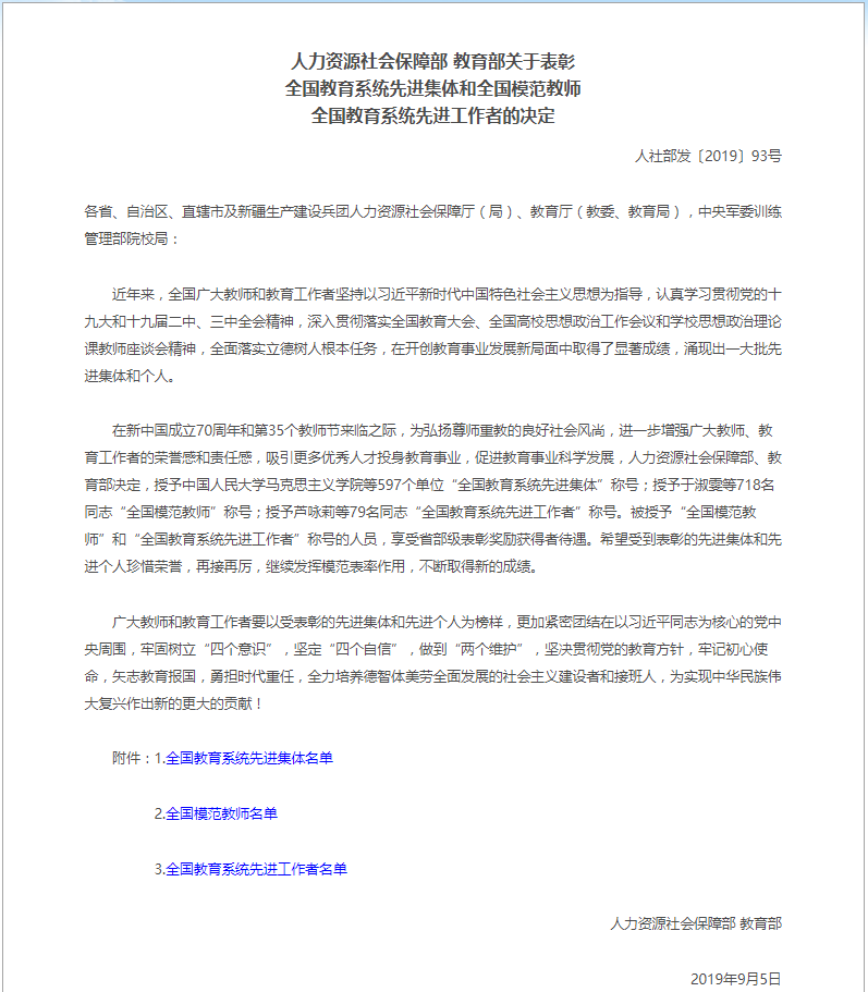 9月5日,人力资源社会保障部、教育部发布了《人力资源社会保障部 教育部关于表彰全国教育系统先进集体和全国模范教师全国教育系统先进工作者的决定》,辽宁省共有25名教师被授予“全国模范教师”称号,必赢官网马克思主义学院秦晓波教授被授予“全国模范教师”称号。