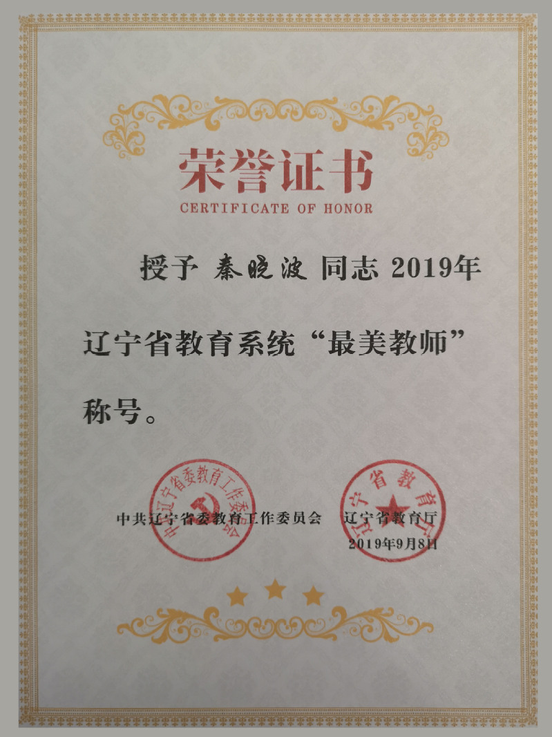 9月8日,辽宁省庆祝2019年教师节暨“最美教师、最美校长、最美园长”颁奖大会在沈阳召开。全省教育系统共有203名教师荣获“最美教师”称号,必赢官网马克思主义学院秦晓波教授荣获辽宁省教育系统“最美教师”称号。