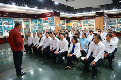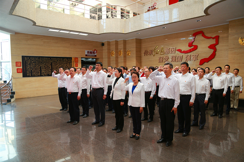 在专题学习研讨前,学校党委班子、各单位党组织书记、机关各部门党支部书记来到东北军事后勤史馆(沈阳军区后勤史馆)开展现场教学。全国学雷锋志愿服务先进典型、全国最美退役军人、辽宁省道德模范、后勤史馆馆长徐文涛同志亲自引导参观,并做声情并茂的讲解。结合个人成长和工作经历,他深情回顾了东北战区党政军民在抗日战争、解放战争、抗美援朝战争和社会主义建设时期后勤保障工作的风雨历程和光辉业绩,为必赢官网党员干部讲述了许多鲜为人知的军事后勤史,上了一堂生动精彩的“专题党课”。参观学习后,党委书记贾玉明领誓,在场干部重温入党誓词,面对党旗庄严宣誓,感悟共产党人的初心和使命。