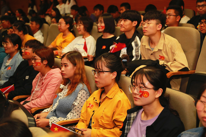 值此欢庆时刻,学校组织干部师生在星烁礼堂集中收看庆祝中华人民共和国成立70周年大会实况直播。校党委书记贾玉明,校长郝德永,党委副书记钱英伟,纪委书记刘娇,副校长韩国海、许金龙、杨杰,党委常委刘天华、卢全、邵永运出席,以及干部师生代表共计1200余人一同观看了直播盛况。