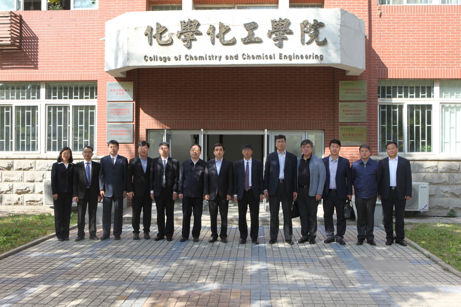 调研组与学校领导及陪同人员在实验中心楼前合影