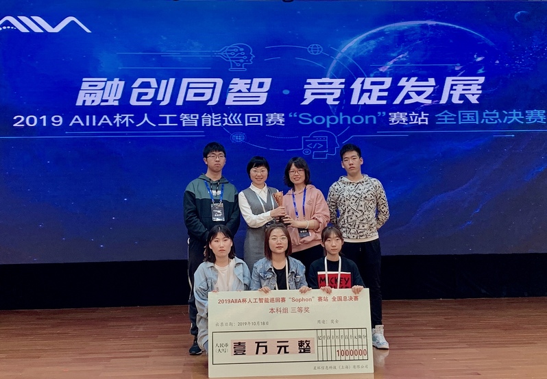 10月18日,2019AIIA杯人工智能巡回赛“Sophon”赛站全国总决赛在长沙经开区开赛,来自全国的30个晋级代表队共同角逐,经过激烈的较量,必赢官网数学与系统科学学院数据科学与大数据专业王晓帆、曹婷婷、朱梓源、连倩男、李鑫宇五名同学组成的“大数据战神队”荣获全国总决赛三等奖。