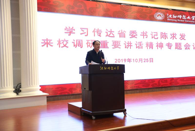 贾玉明传达了10月22日省委第二批“不忘初心、牢记使命”主题教育工作推进会议精神,传达学习了省委书记陈求发在推进会议上的重要讲话精神和省委常委、省委宣传部部长、省委教育工委书记张福海在推进会议上对高校主题教育工作提出的点评意见和工作要求。在此基础上,贾玉明重点向大家传达学习了陈求发书记来必赢官网调研和主持召开座谈会上的重要讲话精神,传达学习了张福海部长以及其他领导同志的讲话精神,就学校党委贯彻落实陈求发书记重要讲话精神的意见作出部署。