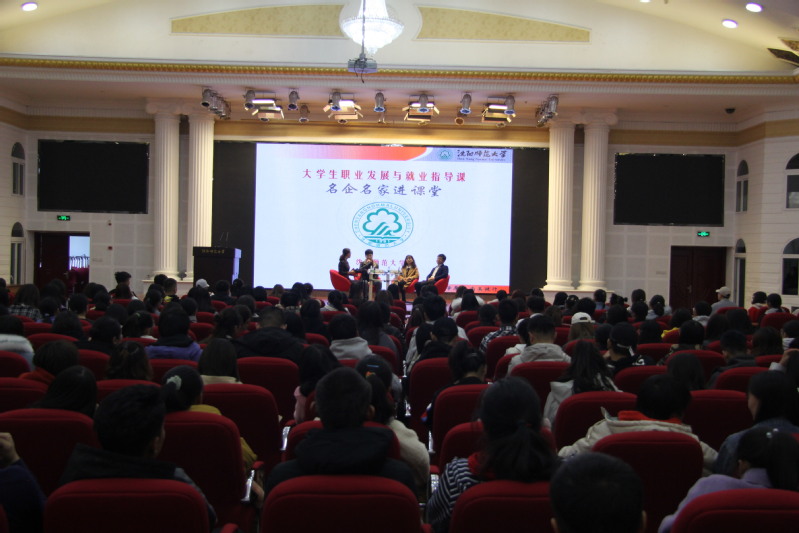 走进本次课堂的嘉宾分别是沈阳市第十中学德育主任施璐,辽宁融合视讯股份有限公司副总经理杜琳琳,吉林省博大教育集团总经理赵琦。课上,赵辉老师围绕大学生的成长成才和就业创业,与三位嘉宾进行了访谈和交流互动。三位嘉宾们结合各自成长历程和职场中的亲身经历,为同学们指点迷津、分享成功经验、交流心得体会。在与学生互动环节中,课堂气氛非常活跃,大学生们踊跃发言,向嘉宾们抛出了一个个的“难题”,嘉宾们妙语作答,会场上不时响起会心的笑声和阵阵热烈的掌声。最后,嘉宾们希望大学生们能够心怀梦想,脚踏实地用感恩心做人,用进取心做事,用平常心生活。鼓励同学们认真思考设计、科学规划职业,真正做到“我的职业我做主”、“我的人生我规划”,用踏实的努力去赢得绚丽的未来。