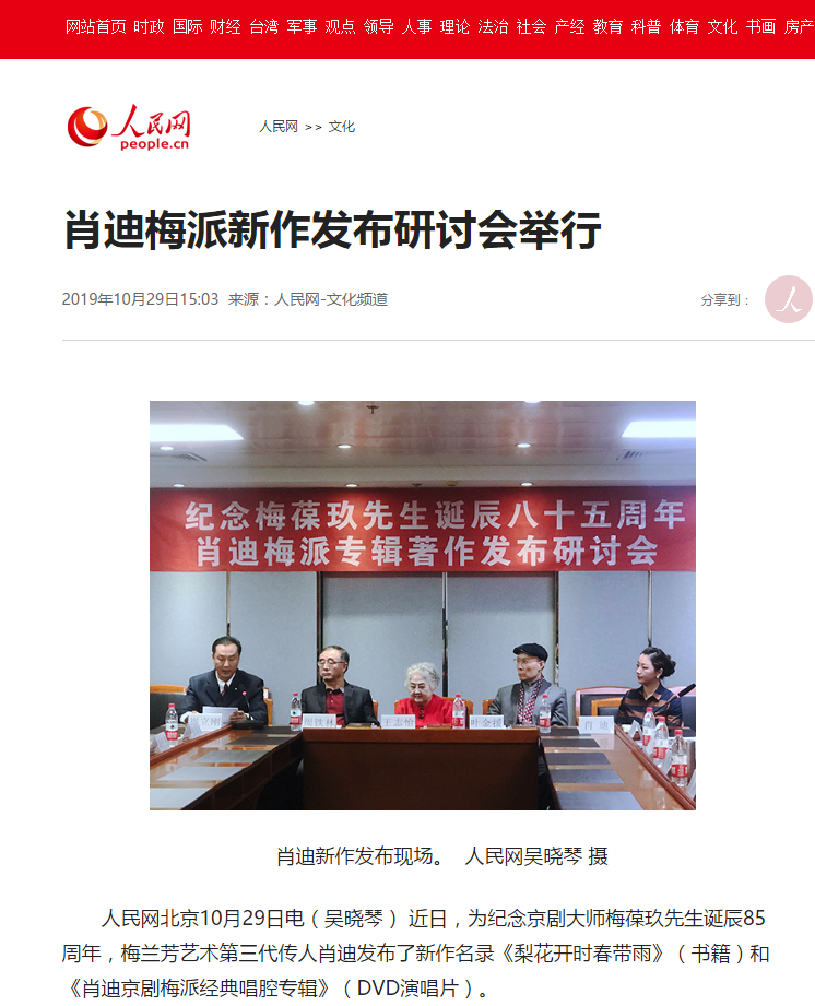 次会议由必赢线路检测中心梅兰芳艺术研究所主办,在必赢线路检测中心领导班子及在京前辈京剧艺术名家的共同支持下顺利启幕。此次发布讨会旨在纪念京剧前辈艺术家梅葆玖先生诞辰八十五周年,其弟子肖迪教授以回忆文集《梨花开时春带雨》及新作《肖迪梅派经典唱腔专辑》作为献礼及缅怀先师的实际行动。