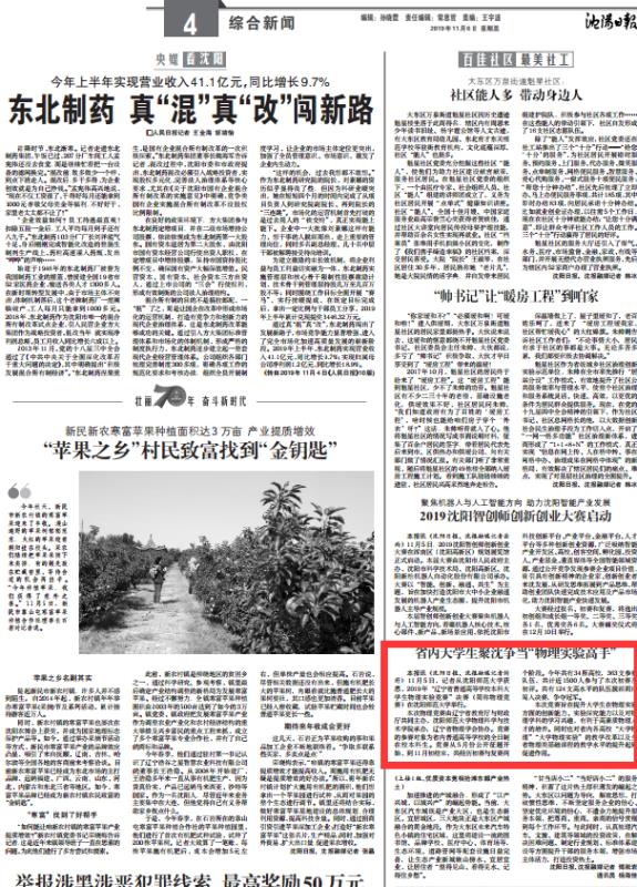 新闻来源:沈阳日报 (2019年11月06日第A04版)