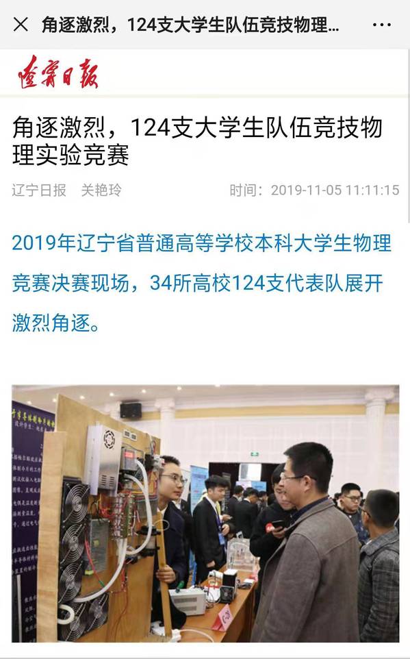 11月2日到3日,2019年辽宁省普通高等学校本科大学生物理实验竞赛在必赢官网举行。此次竞赛旨在激发大学生对物理实验的兴趣与潜能,使学生广泛参与到物理实践中来,在实践中培养、提高大学生的创新能力、实践能力和团队协作意识。新华网、辽宁日报、沈阳日报、沈阳新闻对此活动进行了相关报道。