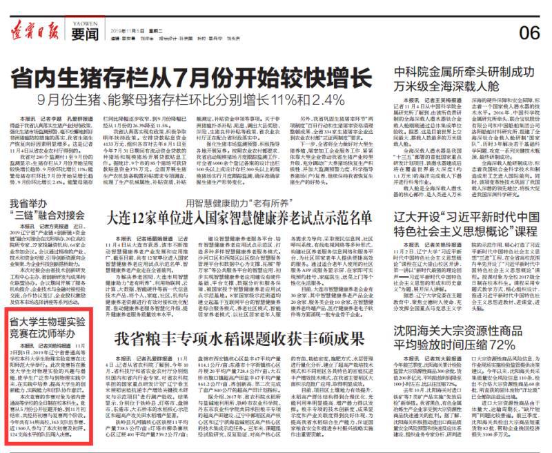新闻来源:辽宁日报 (2019年11月06日第6版)