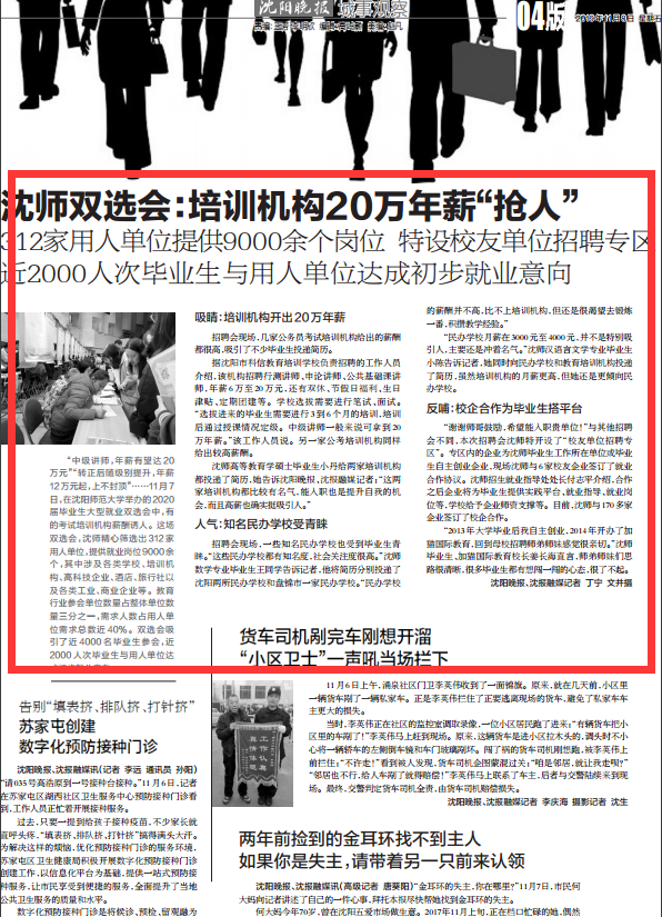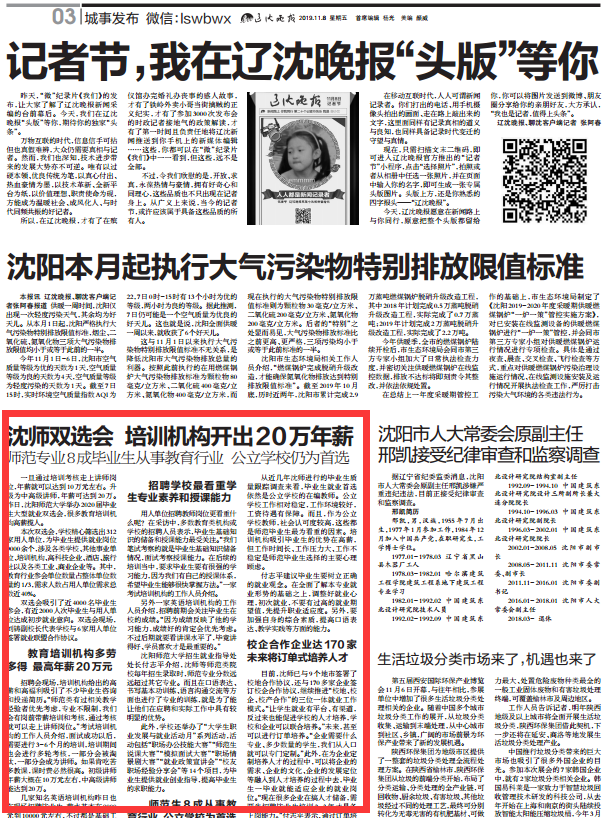 沈阳晚报:http://epaper.syd.com.cn/sywb/html/2019-11/08/content_242382.htm?div=-1 (2019年11月08日第04版)